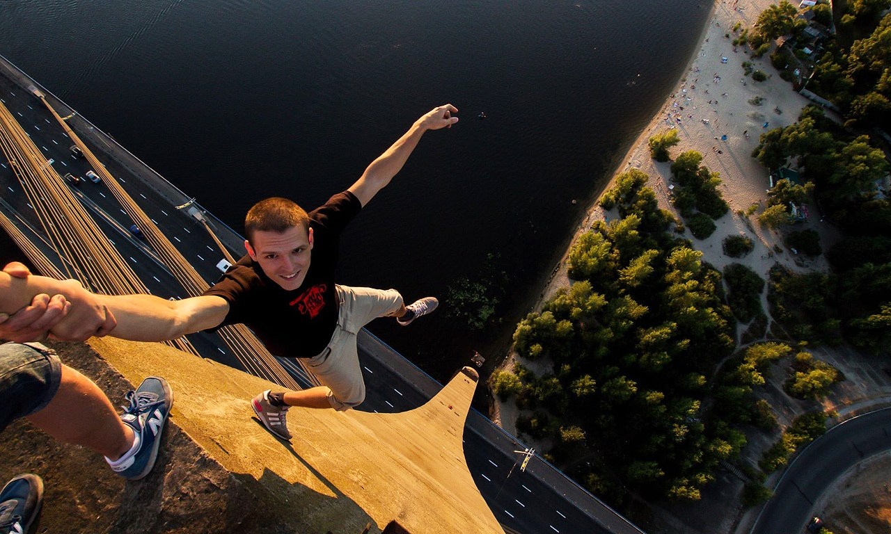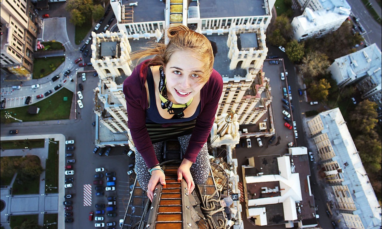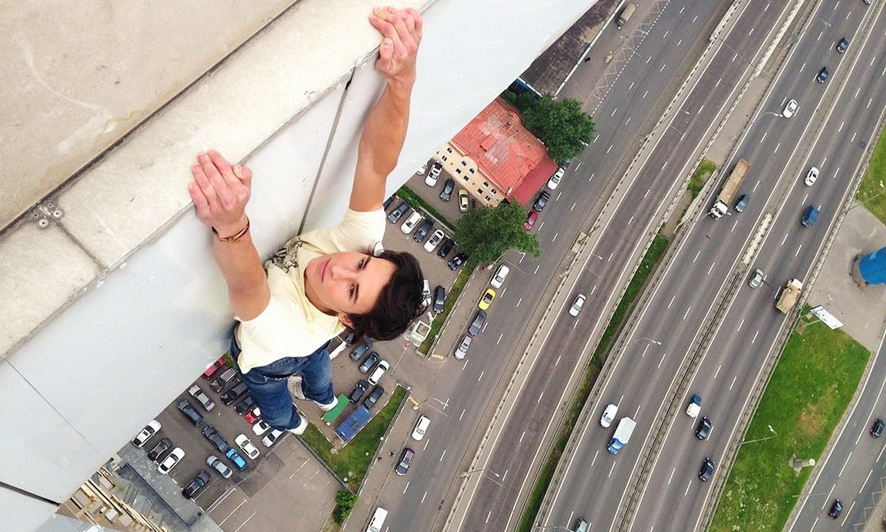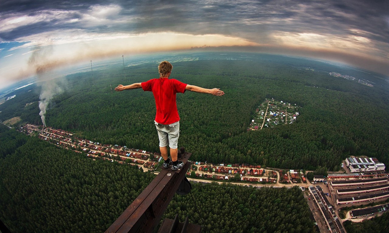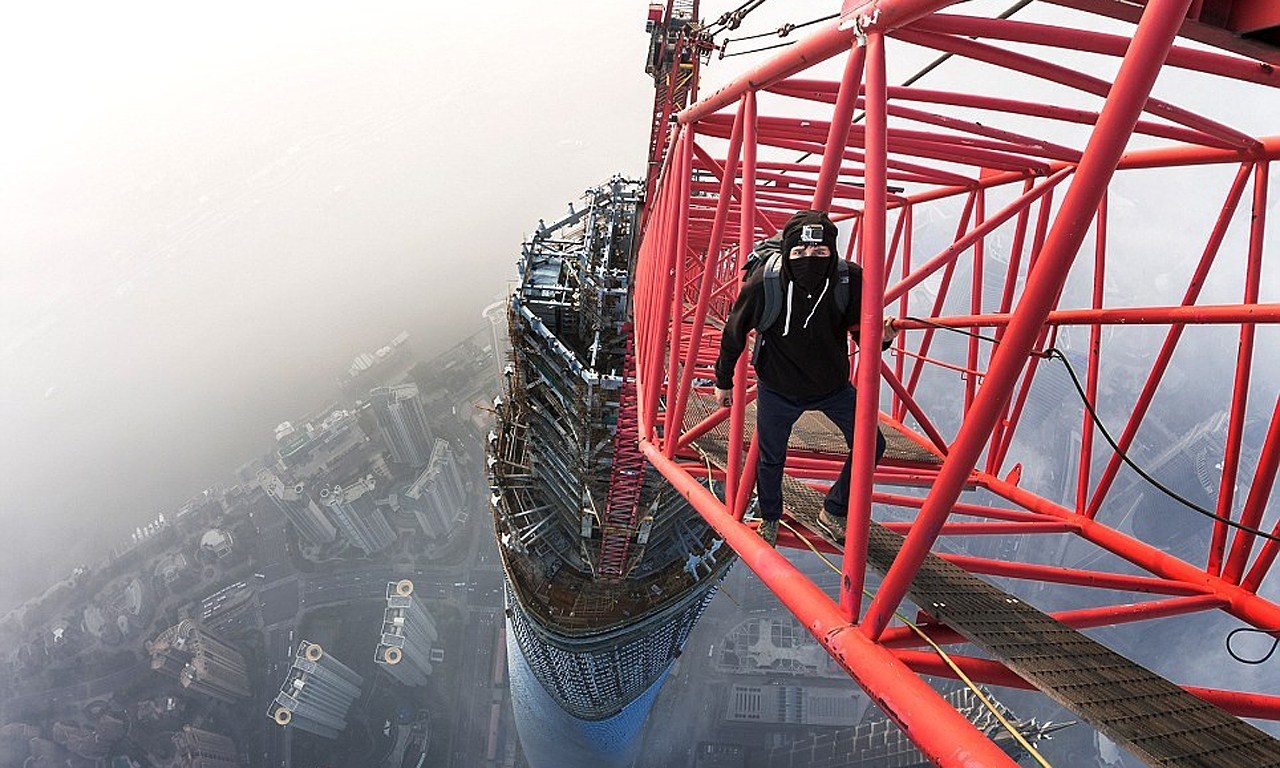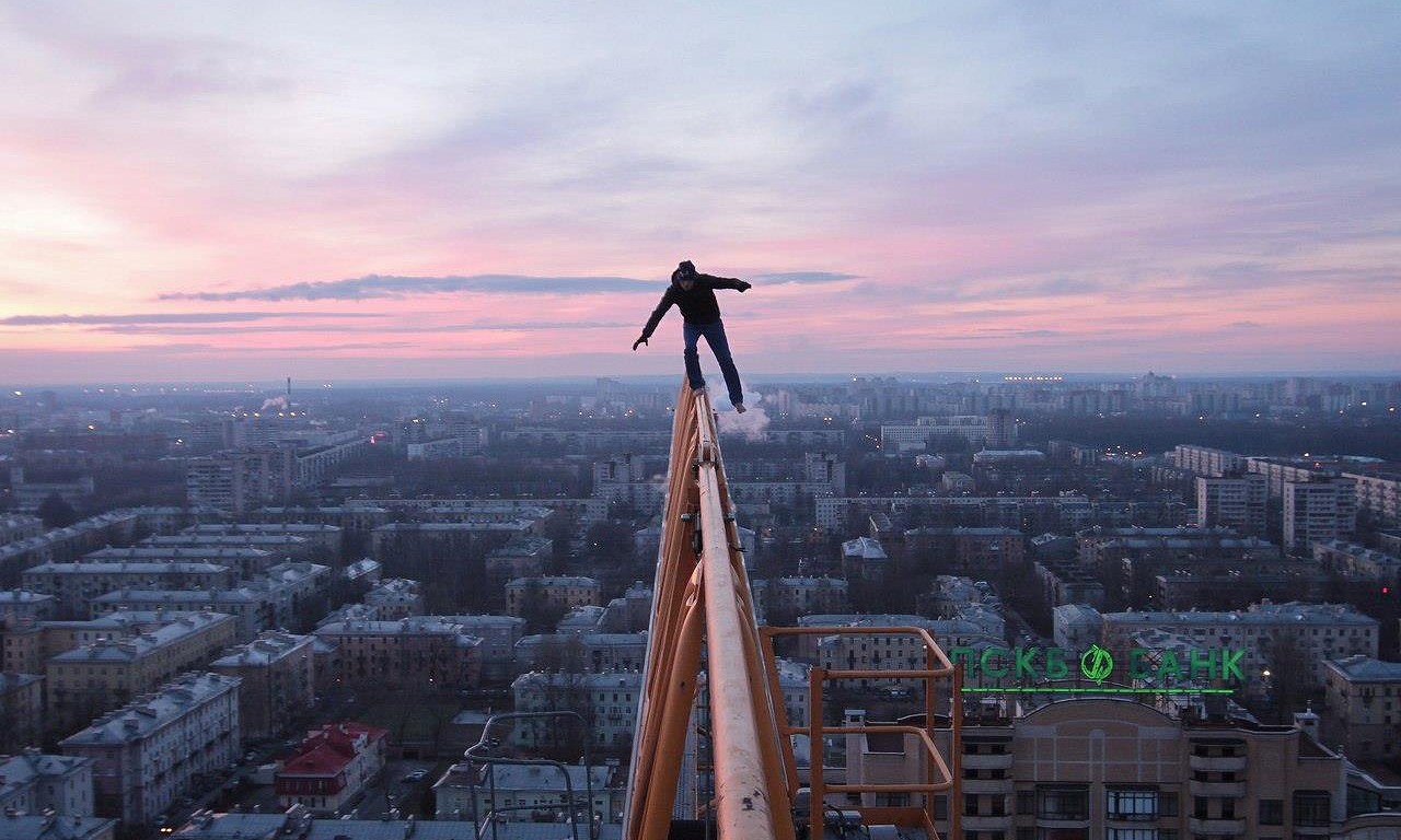 | Thử cảm giác mạnh bằng việc đi trên lan can của một nóc của tòa cao ốc. |