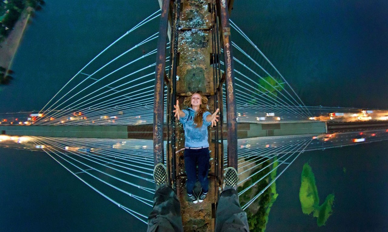 | Hào hứng chia sẻ tấm ảnh chụp từ nóc của một cây cầu. |