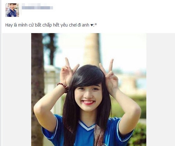 | Lời bài hát được chế thành trạng thái trên mạng xã hội của một cô gái fan đội bóng Chelsea. |