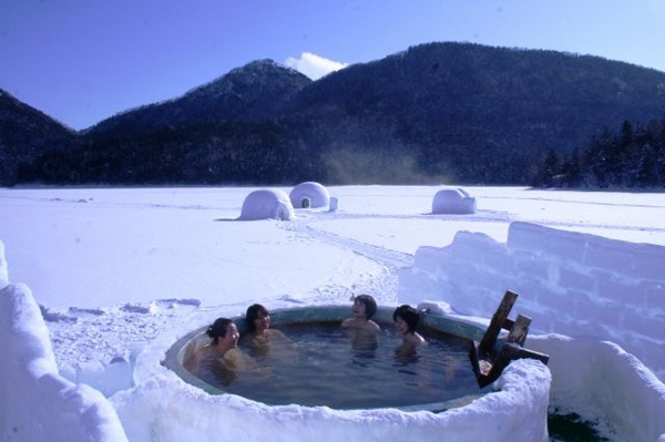 Mùa đông, người Nhật và du khách nước ngoài thường đến các khách sạn băng và thích thú trải nghiệm cảm giác đặc biệt khi được đắm mình trong những bồn tắm băng khổng lồ ở các khu nghỉ dưỡng, nhất là khu vực Hokkaido.