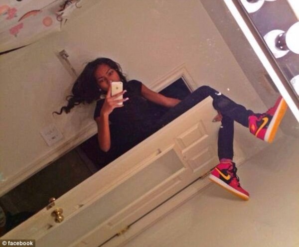 | Cô gái này khá mạo hiểm khi vắt vẻo thân mình trên cánh cửa. |