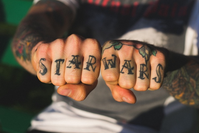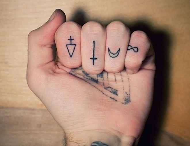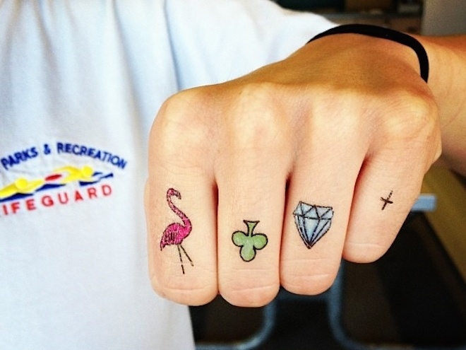 | Song hầu hết mọi người thích xăm kết nối một cụm từ, dòng chữ nào đó giữa các ngón. |