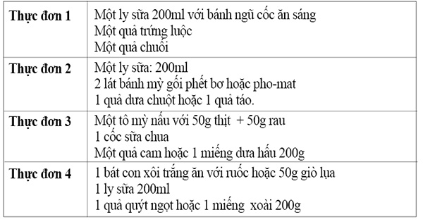 Nhưng với thời gian rất ngắn làm thế nào các bà mẹ có thể chuẩn bị một bữa sáng cho con thật nhanh gọn nhưng lại đủ chất? Dưới đây là một số thực đơn ăn sáng để các mẹ tham khảo: