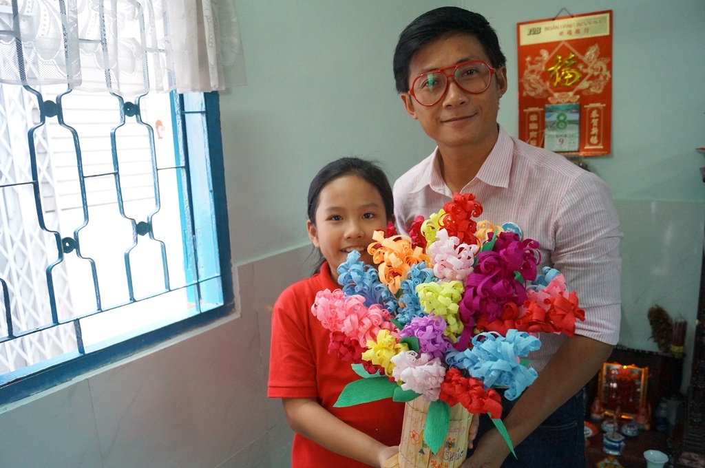 | Nguyên Ân cho biết lý do muốn thực hiện món quà tặng cô bảo mẫu: “Cô như là người mẹ thứ hai, chăm lo cho con từng miếng ăn giấc ngủ. Cô hiền và rất dễ mến”. |