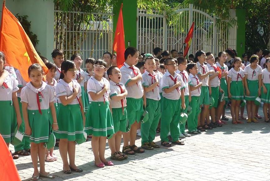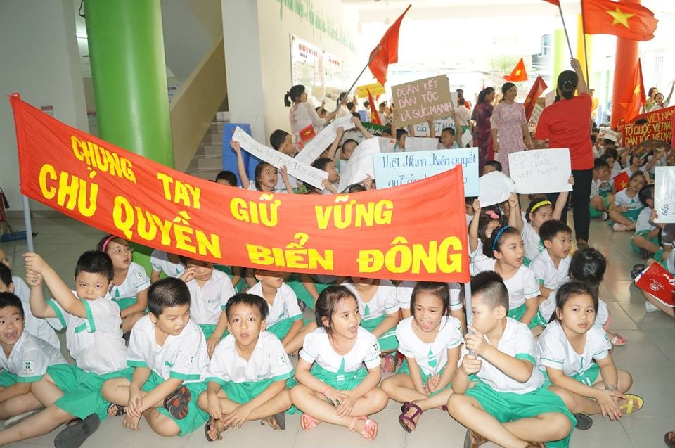 | Tại lễ chào cờ, 450 học sinh tiểu học và hơn 100 cán bộ giáo viên của trường đã cùng nhau xếp thành hình bản đồ Việt Nam với đầy đủ quần đảo Trường Sa, Hoàng Sa, đảo Phú Quốc và cất vang bài Quốc ca. |