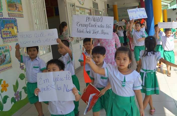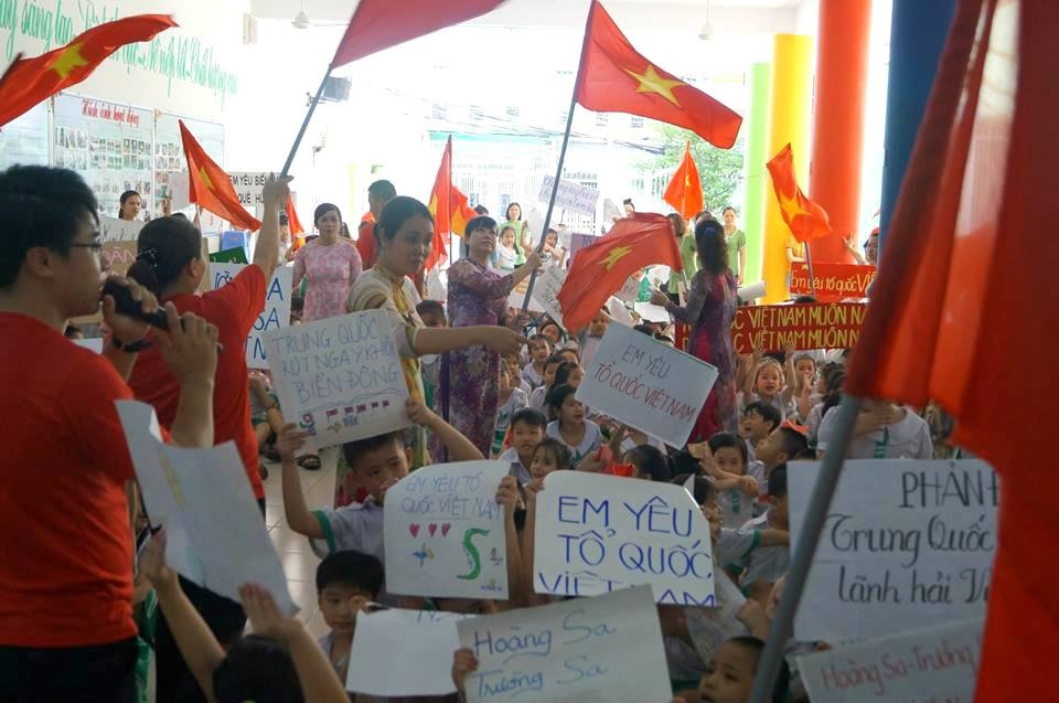 | Sáng 13/5, một buổi lễ chào cờ đặc biệt đã diễn ra ở trường Mầm non – Tiểu học Đức Trí (Q.Hải Châu, Đà Nẵng). Buổi chào cờ nhằm giáo dục thiếu nhi tình yêu quê hương, đất nước trước hành động sai của Trung Quốc. |