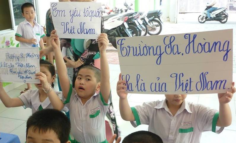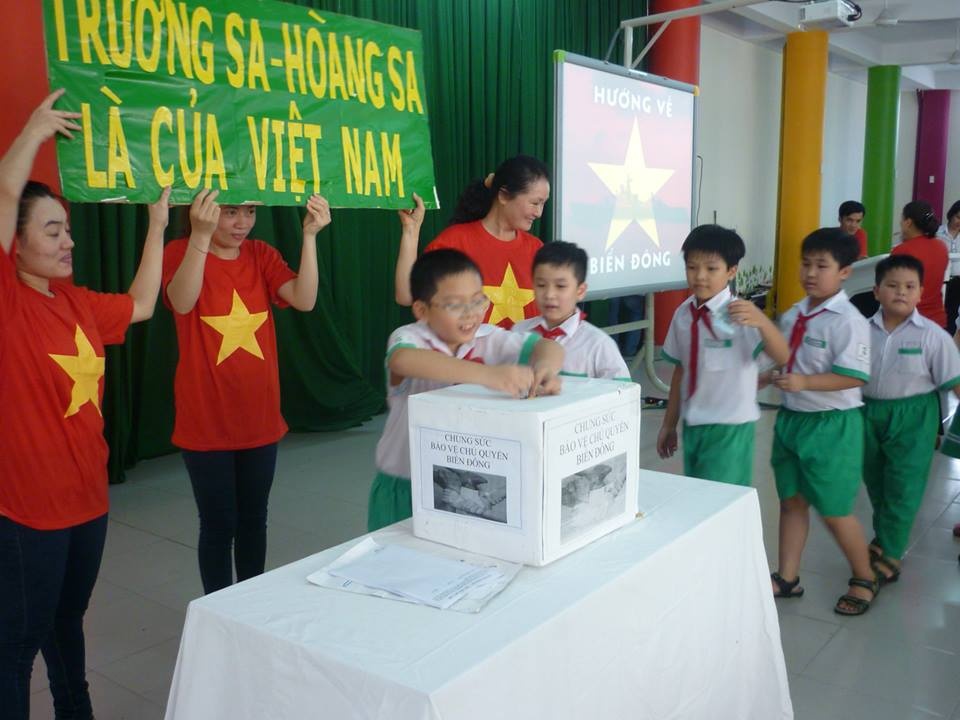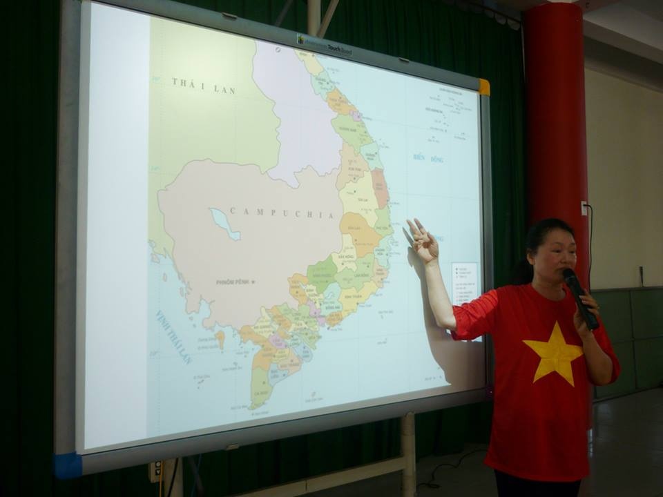 | Ngay sau hoạt động xếp hình bản đồ, các học sinh được nghe và xem những hình ảnh về việc Trung Quốc vi phạm chủ quyền vùng biển Việt Nam trong những ngày vừa qua, nghe các bài hát về tình yêu quê hương, đất nước như Tổ quốc gọi tên mình, Lấy lại Hoàng Sa, Trường Sa….. |