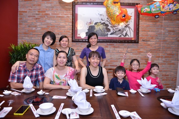 | Bữa tiệc gia đình ấm cúng tại nhà hàng Vương Quốc Tôm. |