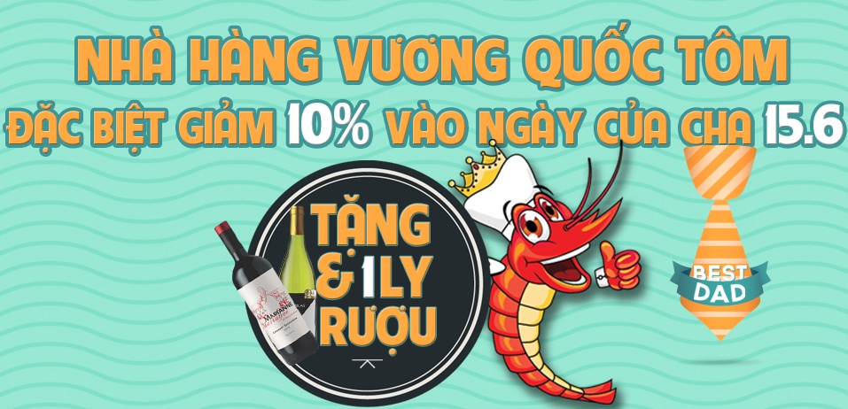 Khi đến thưởng thức ẩm thực tại nhà hàng hải sản Vương Quốc Tôm vào Ngày của Cha 15/6, thực khách sẽ nhận được mức ưu đãi đặc biệt: giảm giá 10% trên tổng hóa đơn thanh toán.