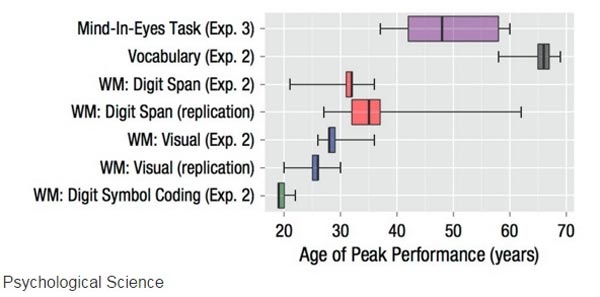 Ngoài ra, một số kỹ năng khác cũng đạt đỉnh điểm ở độ tuổi trung niên: đọc cảm xúc của người khác - tốt nhất ở tuổi 47, nhớ lại những sự kiện đã xảy ra - tốt nhất ở tuổi 35.