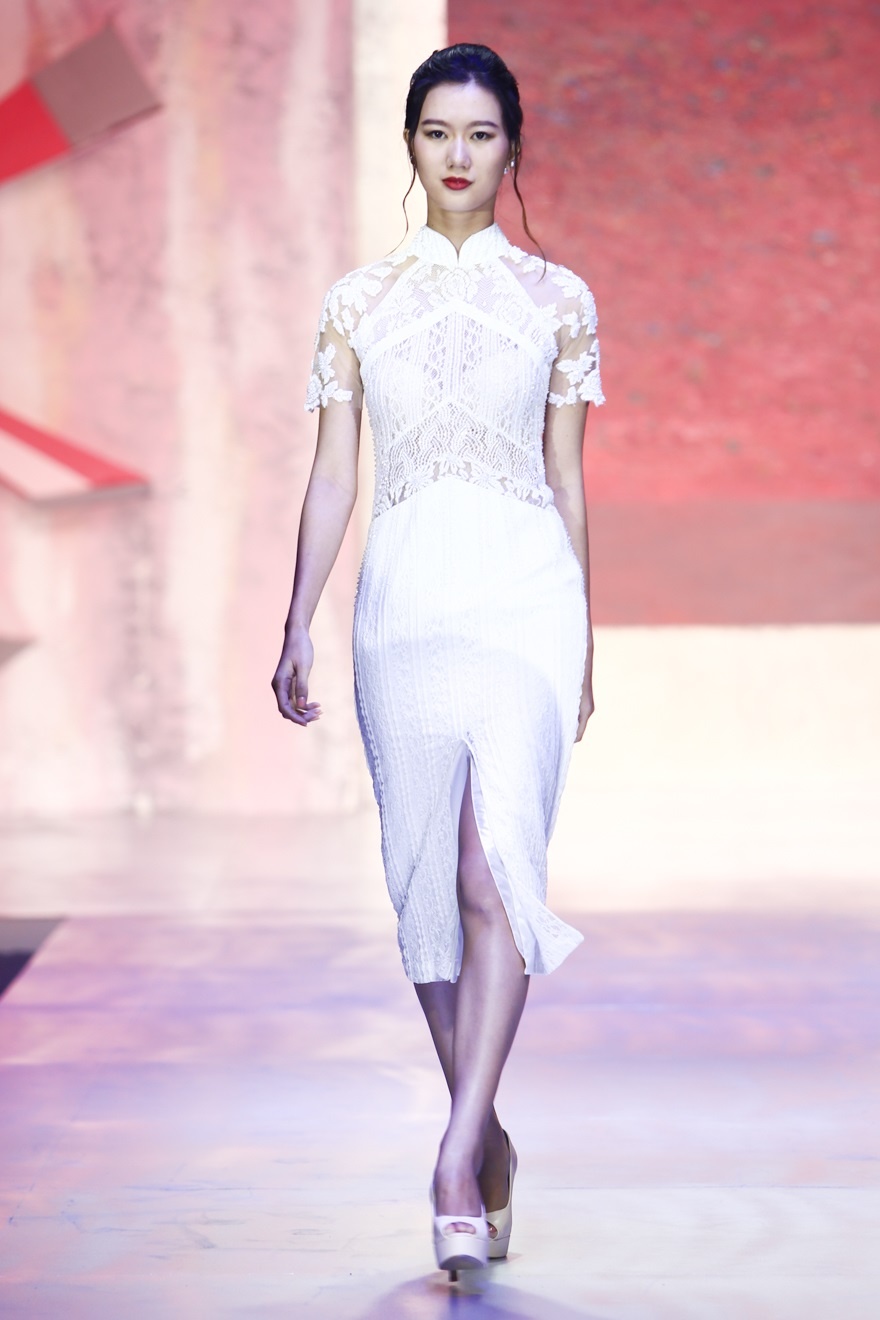| Đầm cocktail dành cho phụ dâu cũng được mang lên sàn diễn mùa cưới cuối năm 2015. Chất liệu chủ đạo là lụa mỏng, kết ren sáng tạo ở thân áo. |