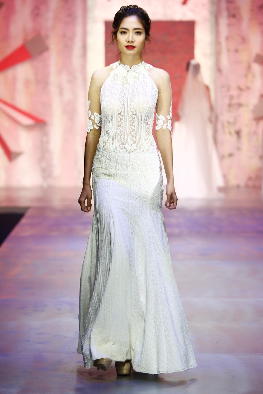 | Bộ sưu tập áo cưới lãng mạn của Trương Thanh Hải hướng đến phong cách cổ điển, sexy và không kém phần thanh lịch. Tông màu trắng làm chủ đạo xuyên suốt bộ sưu tập. |