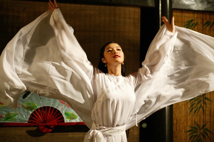 | Cảnh quay khó nhất là Triệu Thị Hà vừa phải ngâm mình dưới nước lạnh buổi tối, vừa phải múa với bộ trang phục ướt sũng, nặng trịch. Cuối cảnh, cô còn phải lặn sâu xuống hồ, vì vậy hoa hậu vừa quay vừa run vì lạnh. |