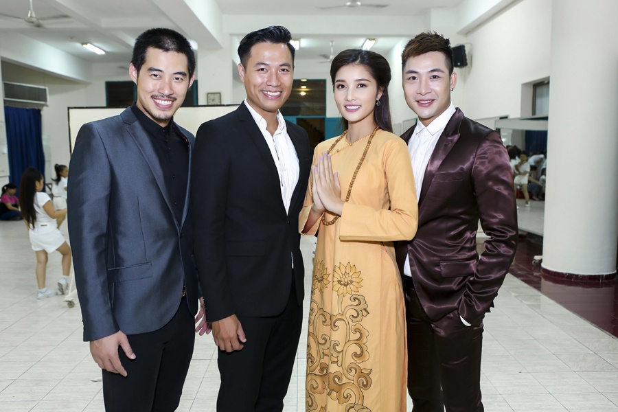 | Hoa hậu các dân tộc Việt Nam duyên dáng bên đồng nghiệp nam. |