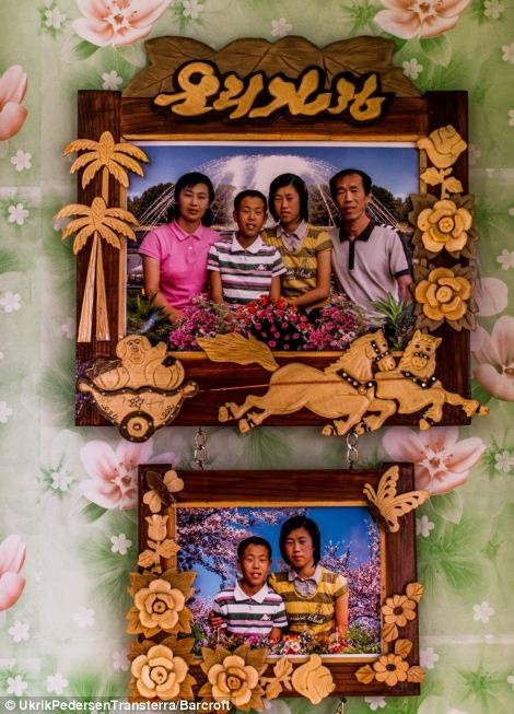 | Một bức ảnh gia đình treo trên tường ở vùng núi Chilbo, Triều Tiên. |