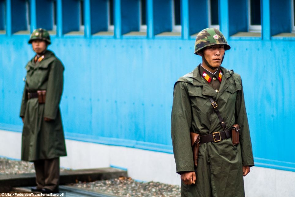 | Pedersen đã ngạc nhiên về cuộc sống bình thường của người Triều Tiên. Trong hình là hai quân nhân đang chụp ảnh cho nhau. |