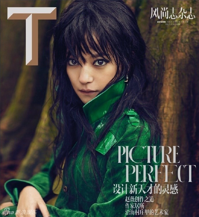 | Hình ảnh Triệu Vy trên tạp chí T số tháng 4/2015 đang thu hút sự chú ý của người hâm mộ. |