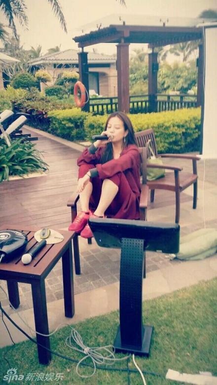 | Triệu Vy hát karaoke. Dù ở nhà, mỹ nhân Hoa ngữ vẫn rất chỉn chu và thời trang. |