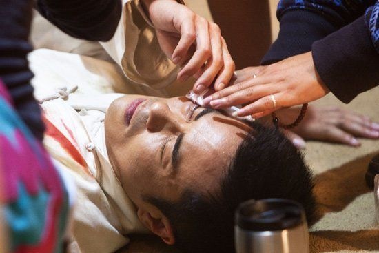 | Trịnh Gia Dĩnh bị thương ở mắt, phải khâu tới 10 mũi khi quay cảnh hành động trên phim trường Diệp Vấn. |