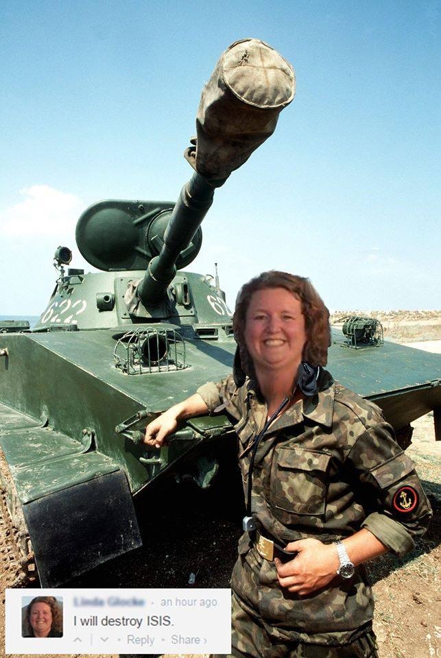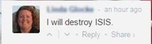Theo Theladbible, Linda Clarke (43 tuổi, sống tại bang Georgia, Mỹ) mới đây bất ngờ nổi tiếng trên mạng sau khi cô chia sẻ dòng trạng thái: “Tôi sẽ phá hủy IS” trên Twitter.