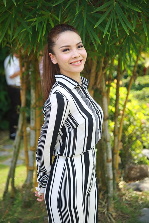 Yến Trang khoe vẻ tươi tắn với tông trang điểm cam nhạt rất đáng yêu.