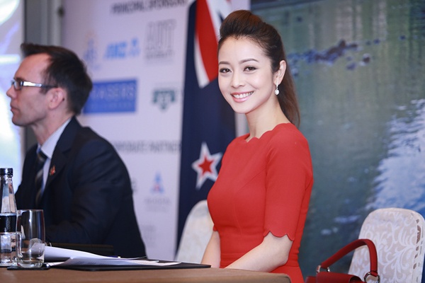 Jennifer Phạm chọn cách trang điểm nhẹ khi tham gia một sự kiện.