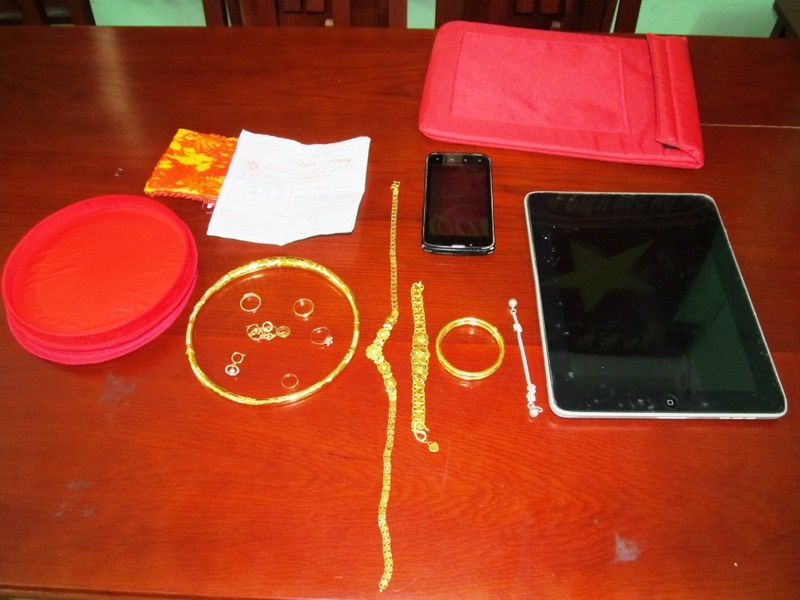 Lực lượng chức năng phát hiện trong người thanh niên này giấu nhiều tài sản có giá trị như vòng đeo cổ, lắc tay, dây chuyền, bông tai bằng vàng, iPad, điện thoại di động. Tổng giá trị tài sản khoảng 100 triệu đồng.