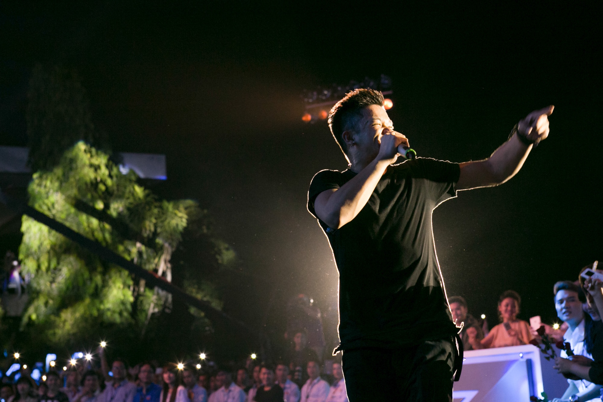 | Trọng Hiếu chạy xuống tận phía khán giả để hát và giao lưu cùng các bạn sinh viên ĐH Sư phạm Kỹ thuật. Bên cạnh các hoạt động âm nhạc, anh vừa có vai diễn điện ảnh đầu tiên trong phim Em là bà nội của anh. Phim sẽ được khởi chiếu từ trung tuần tháng 12/2015. |