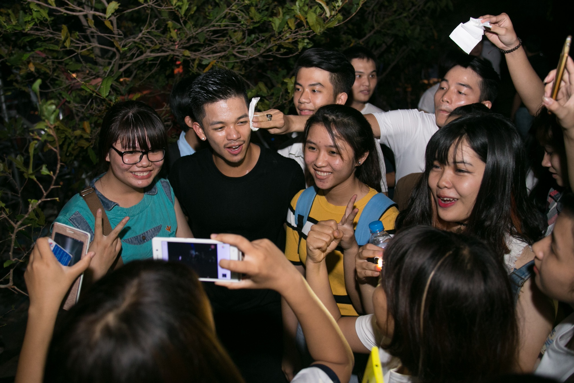 | Kết thúc chương trình, Trọng Hiếu được người hâm mộ vây kín để xin chụp hình và hỏi chuyện... Có fan còn nhiệt tình giúp ca sĩ lau mồ hôi sau phần trình diễn quá sung. Sau Con đường tôi - ca khúc dành cho người chiến thắng ở Vietnam Idol, Trọng Hiếu mới phát hành single Let me be the one và nhận được nhiều phản hồi tích cực từ người yêu nhạc. |