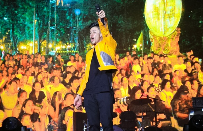 | Nam ca sĩ cháy hết mình trên sân khấu qua từng ca khúc. |