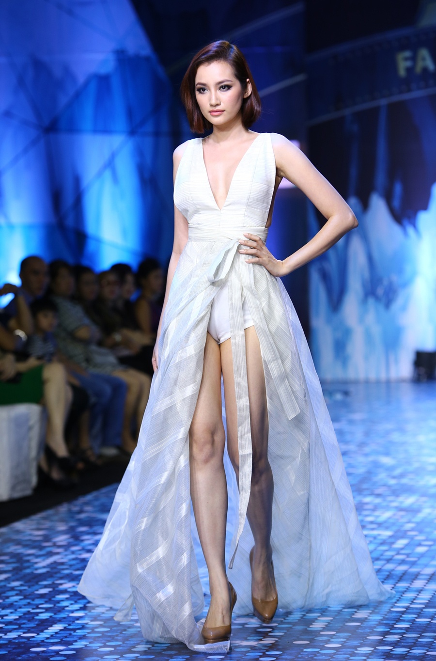 | Thu Hiền góp mặt ở chương trình với vai trò người mẫu. Chân dài tham gia trình diễn 6 bộ sưu tập của các nhà thiết kế và thương hiệu Việt. |