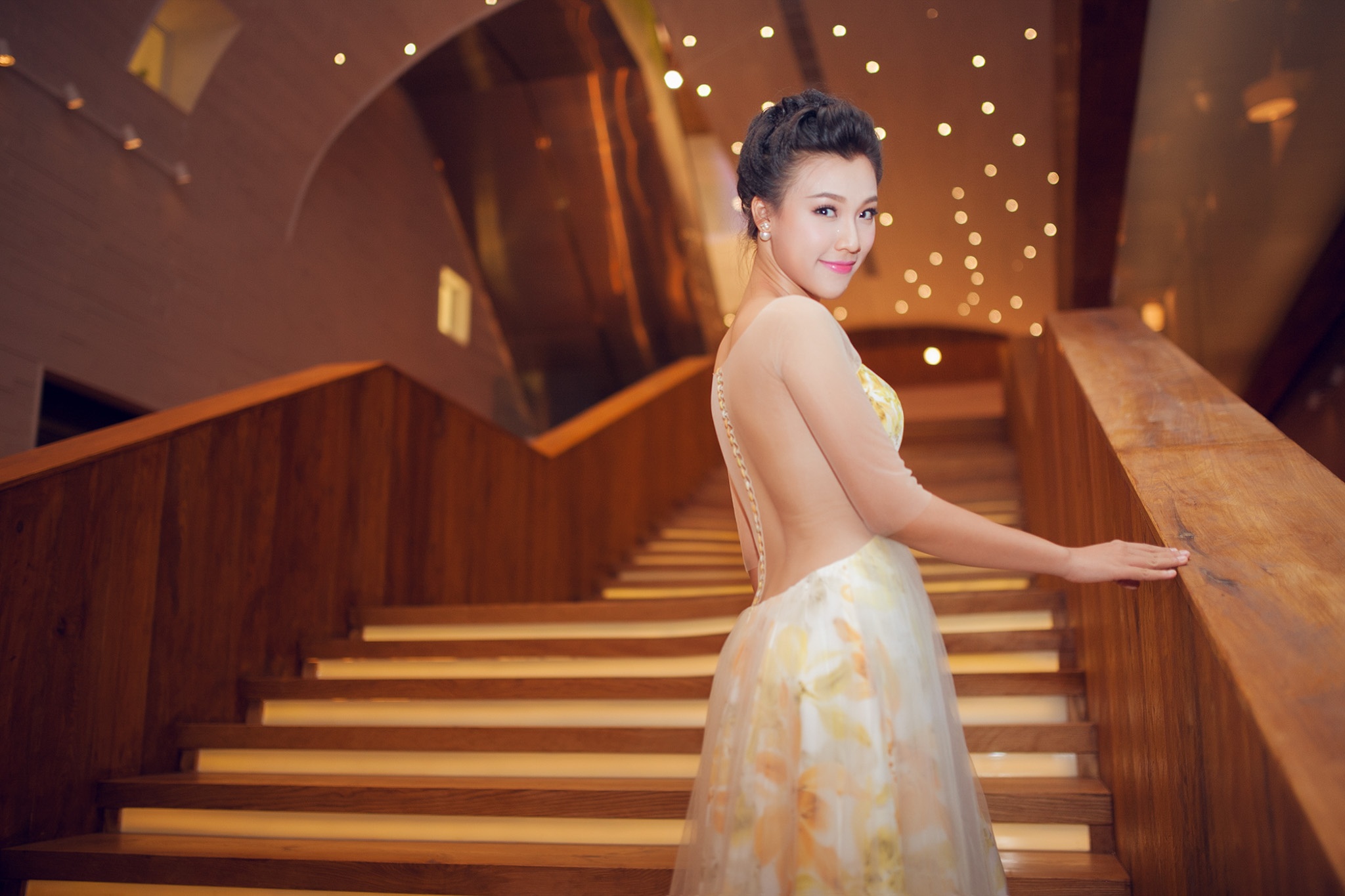 | Thiết kế giúp người đẹp 9X khoe khéo lưng trần cuốn hút. Bạn gái diễn viên Huỳnh Anh chọn tông trang điểm trẻ trung, ngọt ngào, giúp cô tự tin đảm nhận vai trò MC sự kiện. |