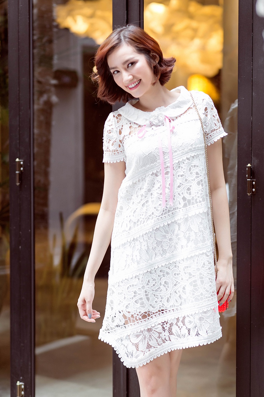 | Bộ sưu tập hướng đến phong cách nhẹ nhàng, nữ tính, phù hợp với tiết trời mùa xuân phương Nam. Hoa hậu thời trang duyên dáng với kiểu đầm suông, chất liệu ren tinh tế. |