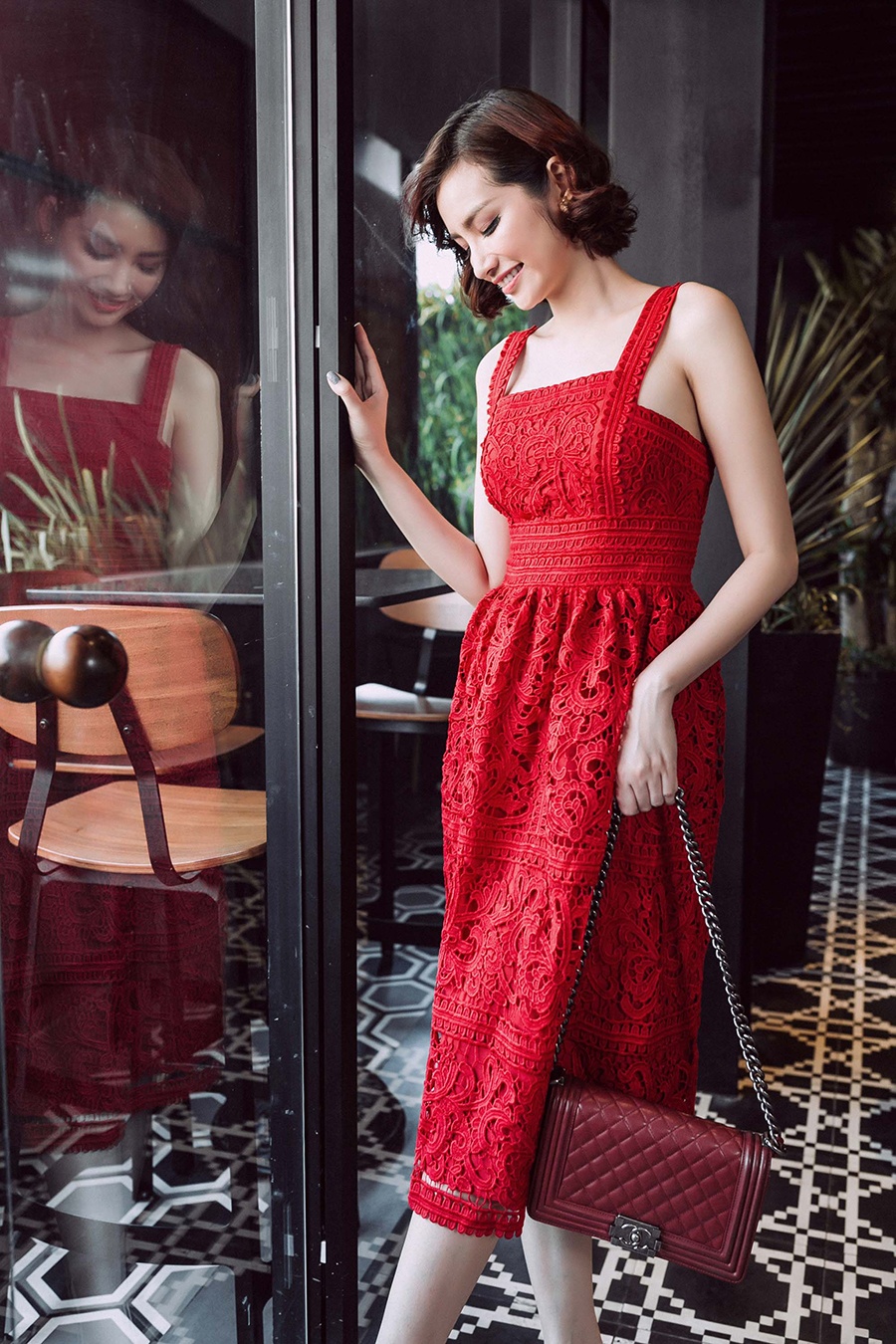 | Gam màu đỏ được ưa chuộng vào mùa xuân cũng được ứng dụng trong bộ sưu tập mới. Thiết kế chất liệu ren cao cấp phù hợp xu hướng hiện đại. |