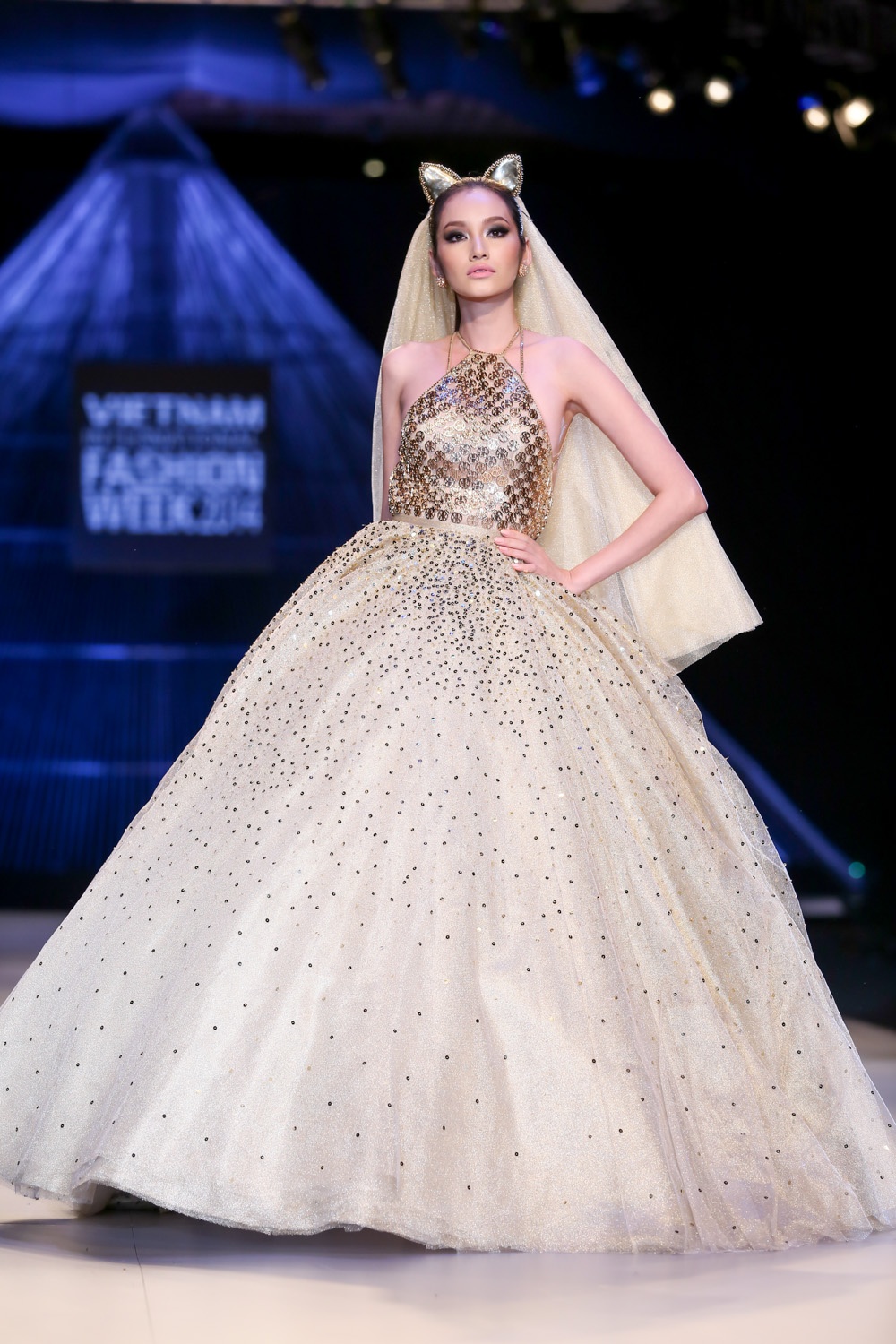 | Tham gia chương trình Vietnam International Fashion Week 2014, ngày 2/12, tại TP.HCM, Trúc Diễm đảm nhận vai trò vedette BST xuân hè 2015 của NTK Chung Thanh Phong. Trên sàn diễn tiêu chuẩn quốc tế, hoa hậu thể hiện mẫu đầm cưới độc đáo nhất bộ sưu tập. |
