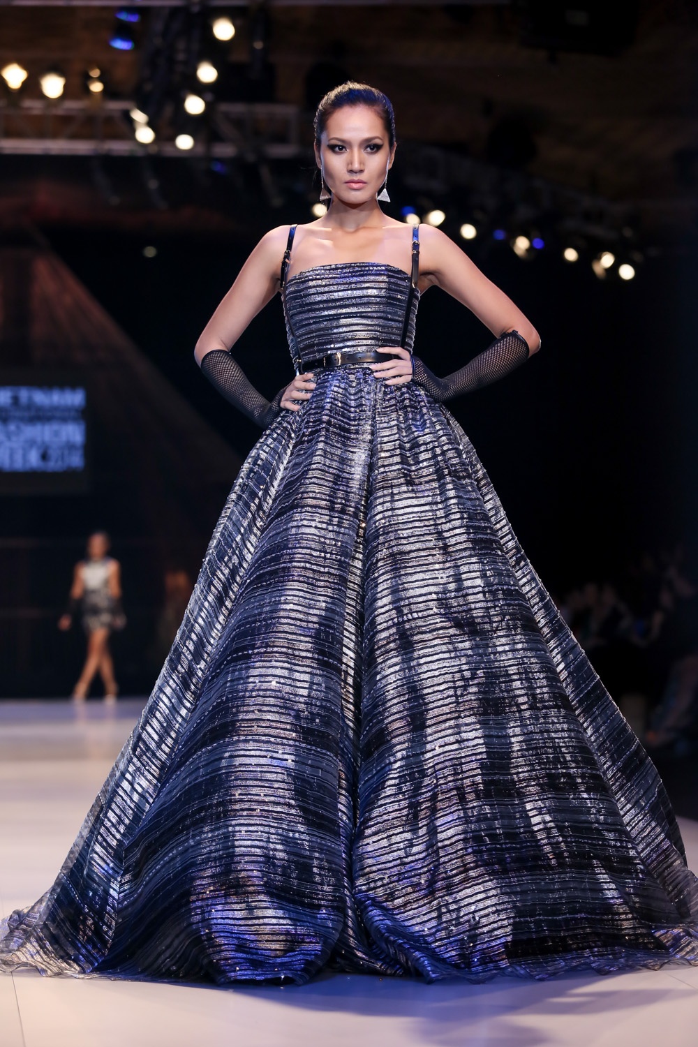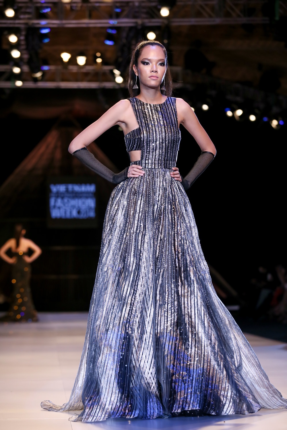| Lần đầu tiên tham gia giới thiệu BST mới tại Vietnam International Fashion Week, NTK Chung Thanh Phong mang đến những thiết kế dạ hội có phong cách hiện đại, năng động và không kém phần lộng lẫy. Người mẫu Minh Tú mở màn show diễn. |