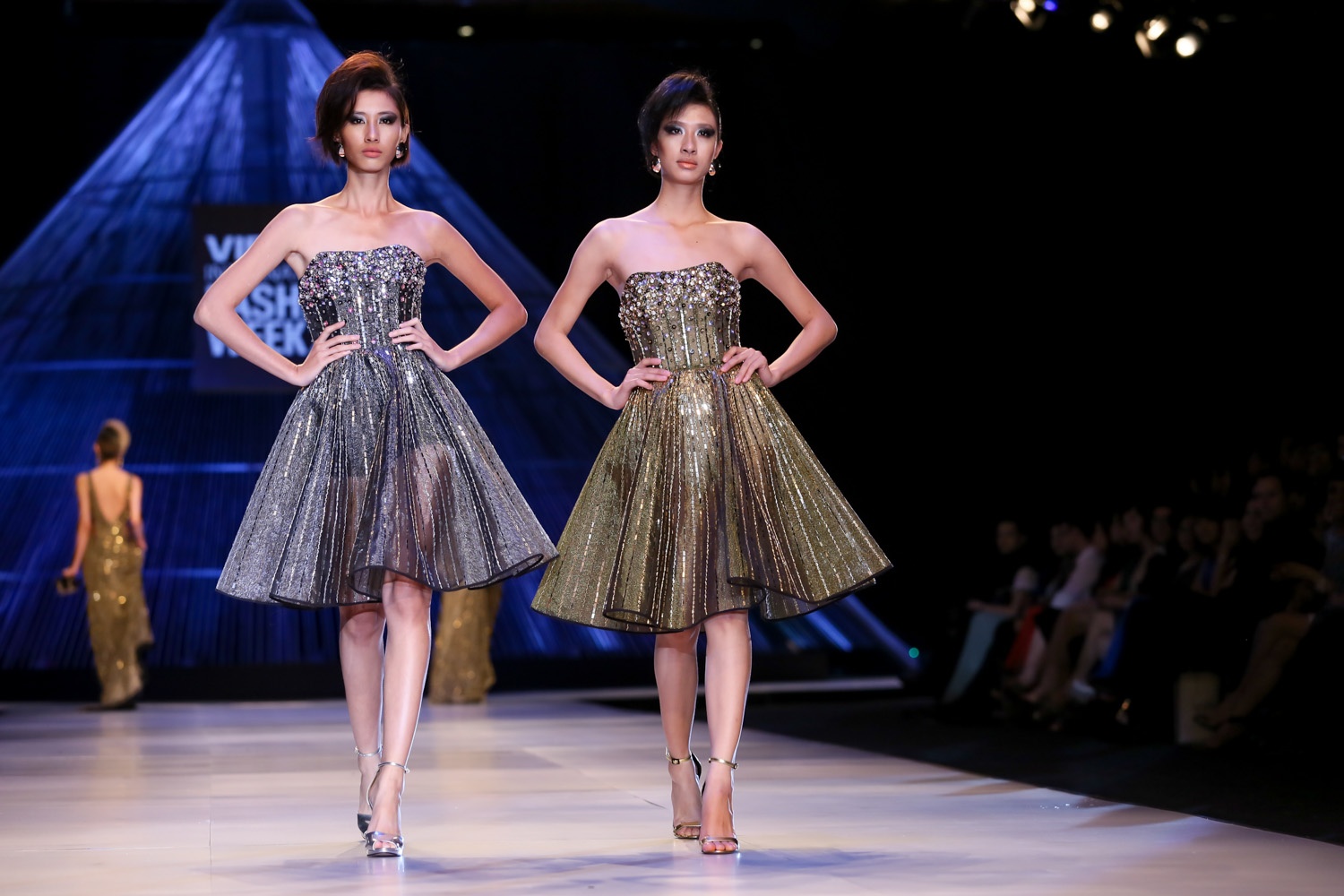 | Quanh Đi sang trọng với mốt đầm ánh kim, chân váy bồng xòe kiểu cách công chúa. |