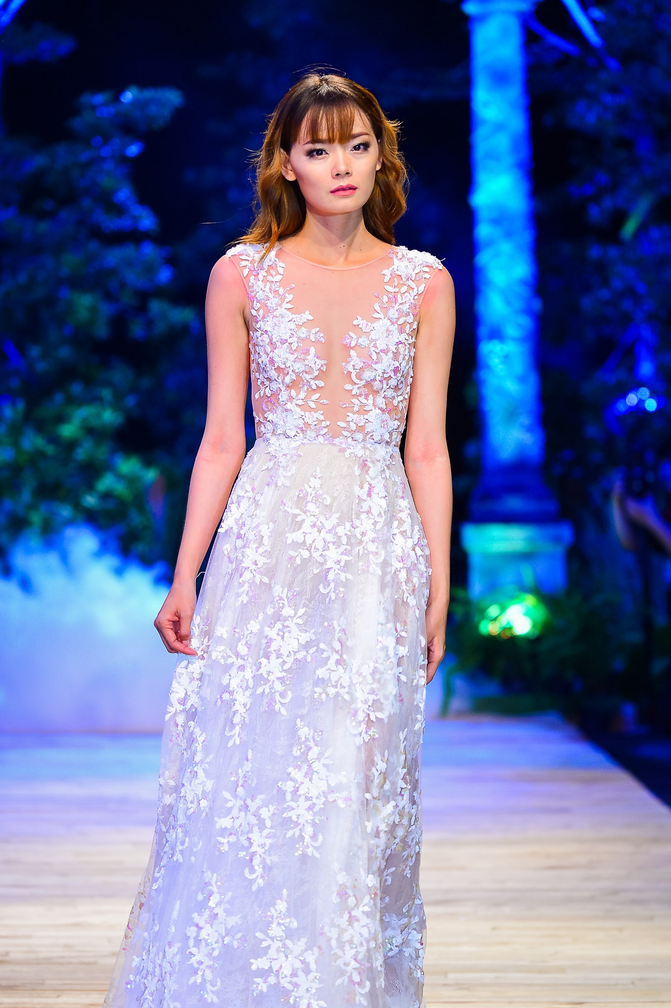 | Phần hai show diễn, Chung Thanh Phong giới thiệu các thiết kế ứng dụng và đầm cưới nhẹ nhàng. |