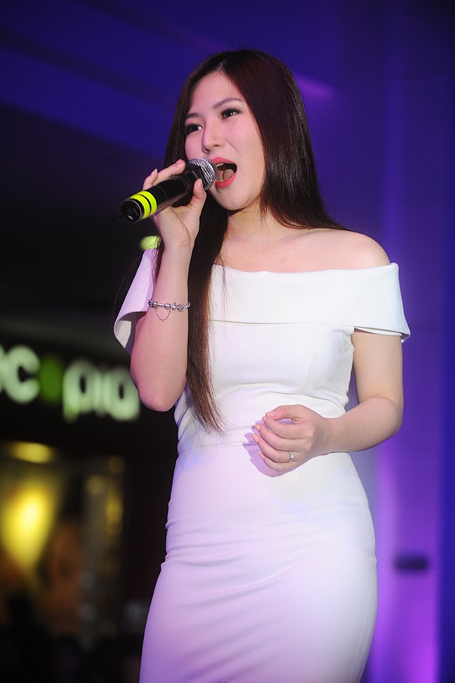 | Quán quân Giọng hát Việt 2012 Hương Tràm góp vui bằng một ca khúc. |