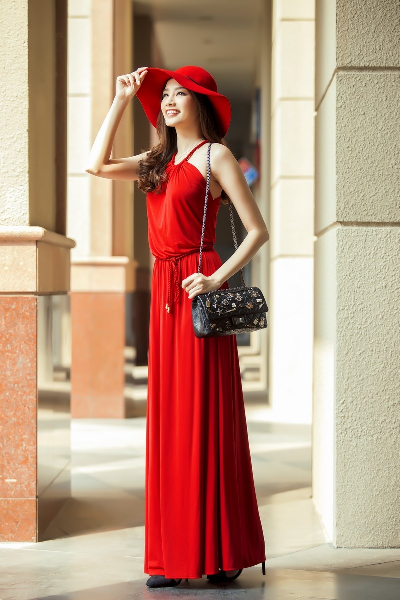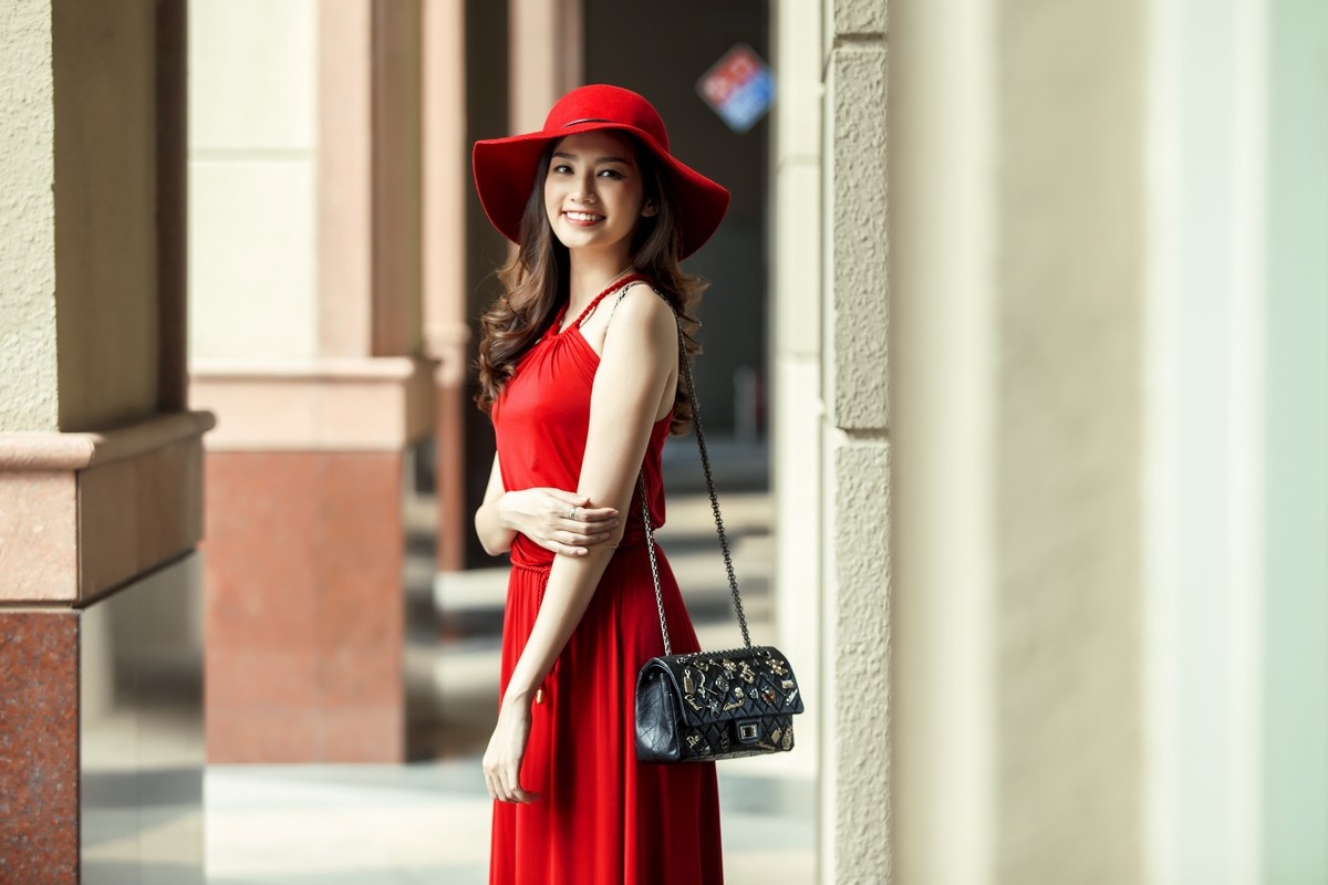 Thiết kế gam màu đỏ làm nổi bật làn da trắng sáng và nụ cười rạng rỡ.