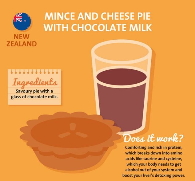 Món ăn giàu protein này có thể phân tán thành các axit amin như taurine, cysteine, khiến các độc tố gây ra do rượu thải ra khỏi gan và cơ thể nhanh hơn. Đây là biện pháp giải rượu độc đáo của đất nước New Zealand.