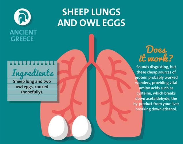 Nghe có vẻ hơi rùng rợn, nhưng món ăn rẻ và rất giàu protein này lại có hiệu quả kỳ diệu và được người Hy Lạp cổ đại rất ưa dùng. Nó cung cấp các axit amin cần thiết như cysteine có khả năng phá vỡ acetaldehude, giúp bảo vệ gan và giảm các hiện tượng nôn nao sau khi say rượu.
