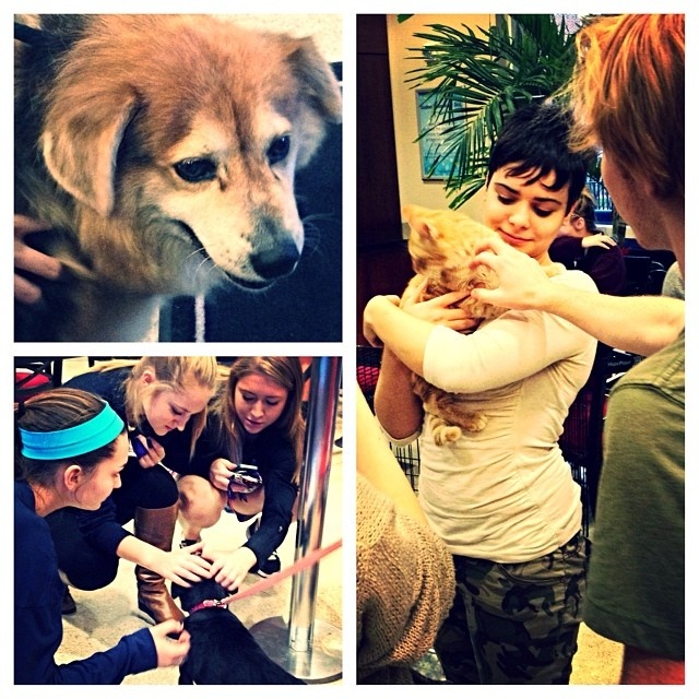 Trong trường còn có một khu vực nuôi các loài động vật như chó và mèo.