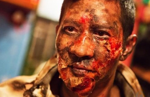 Một trong những cảnh khiến fan tò mò nhất chính là gương mặt bị bỏng gần như toàn bộ với những lớp da bong và rách nát của Trương Gia Huy. Để có được hình ảnh này, ê-kíp hóa trang và Trương Gia Huy đã phải làm việc liên tục trong 5 giờ.