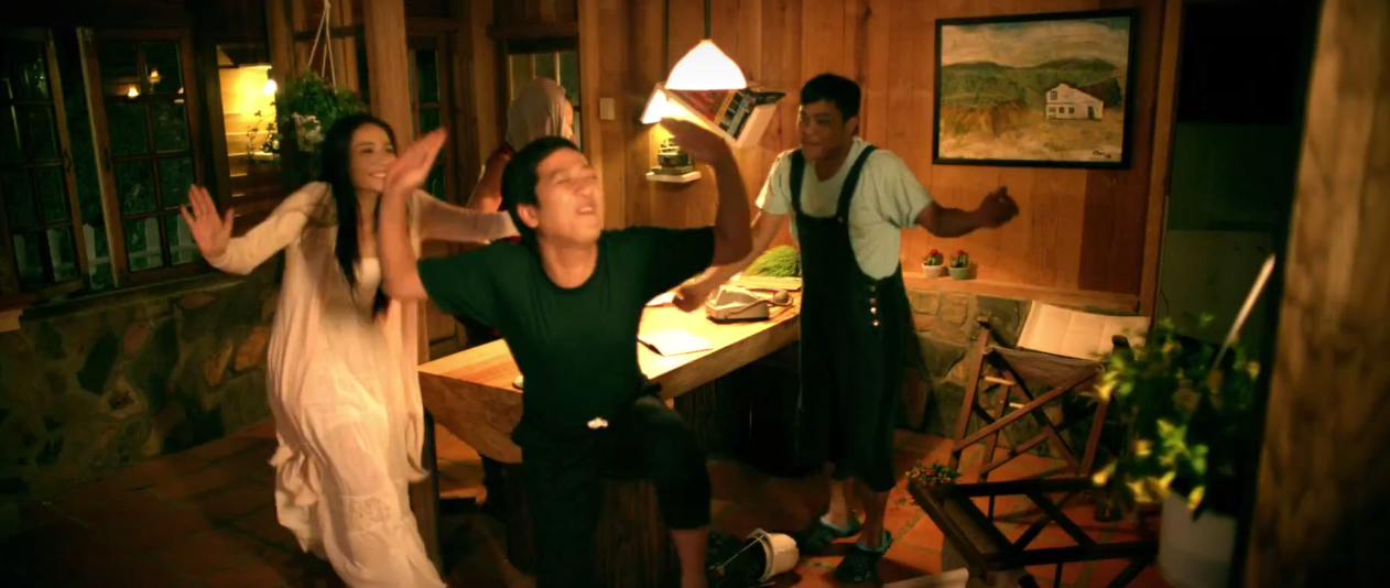 Sau đó, Đông có hàng loạt những hành động khó hiểu như vào cửa hàng mua đồ lót nữ, tự đánh vào mặt trong thang máy, ăn ngấu nghiến mọi món ăn trên bàn, ôm gấu bông đi lang thang trong nước mắt... Những hành động kỳ quặc của anh khiến hai người câu cá qua đường (Hari Won, Ngô Kiến Huy) cũng phải trợn tròn mắt ngạc nhiên.