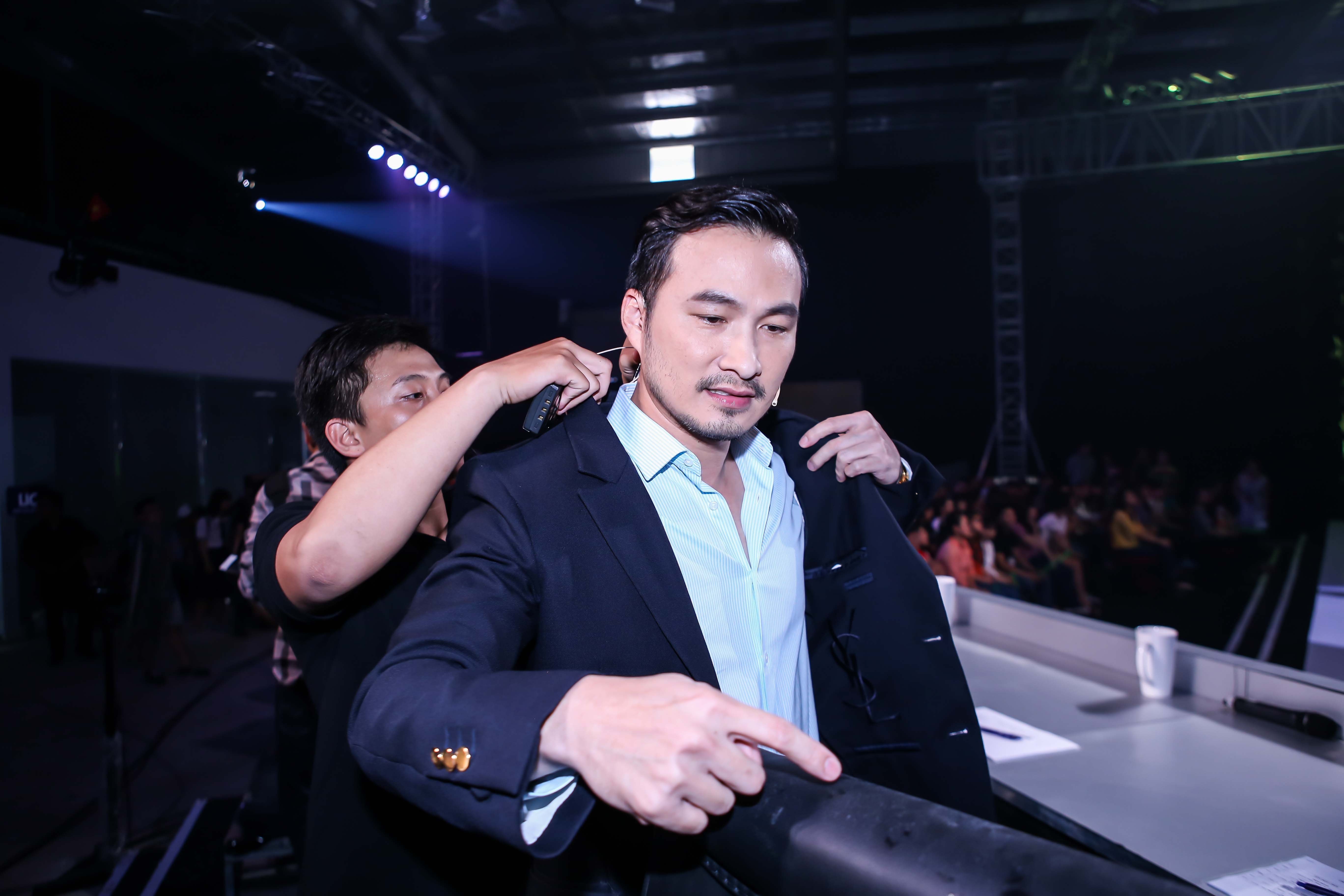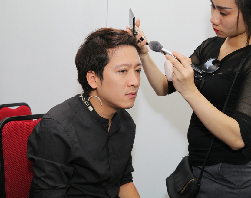 Trong khi đó Trường Gian bận rộn make-up trước giờ lên sóng. Nam nghệ sĩ trở lại với vị trí giám khảo khách mời. Trước đó, anh ngồi ghế nóng ở tập 3 chương trình. |