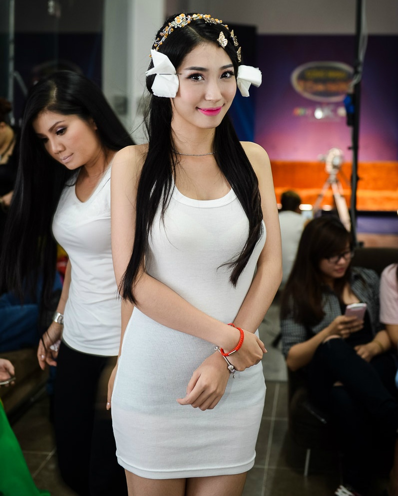 Ở phía ngoài phim trường, giám khảo Việt Trinh và Trác Thúy Miêu gây chú ý bởi phong cách đối lập. |