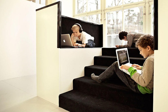 | Tại Vittra Telefonplan vẫn có 2 phòng khép kín đó là phòng Khiêu vũ và phòng Đa phương tiện, đây là những phòng để học sinh thực hiện những việc có thể gây ra tiếng ồn mà không ảnh hưởng đến các bạn khác. |