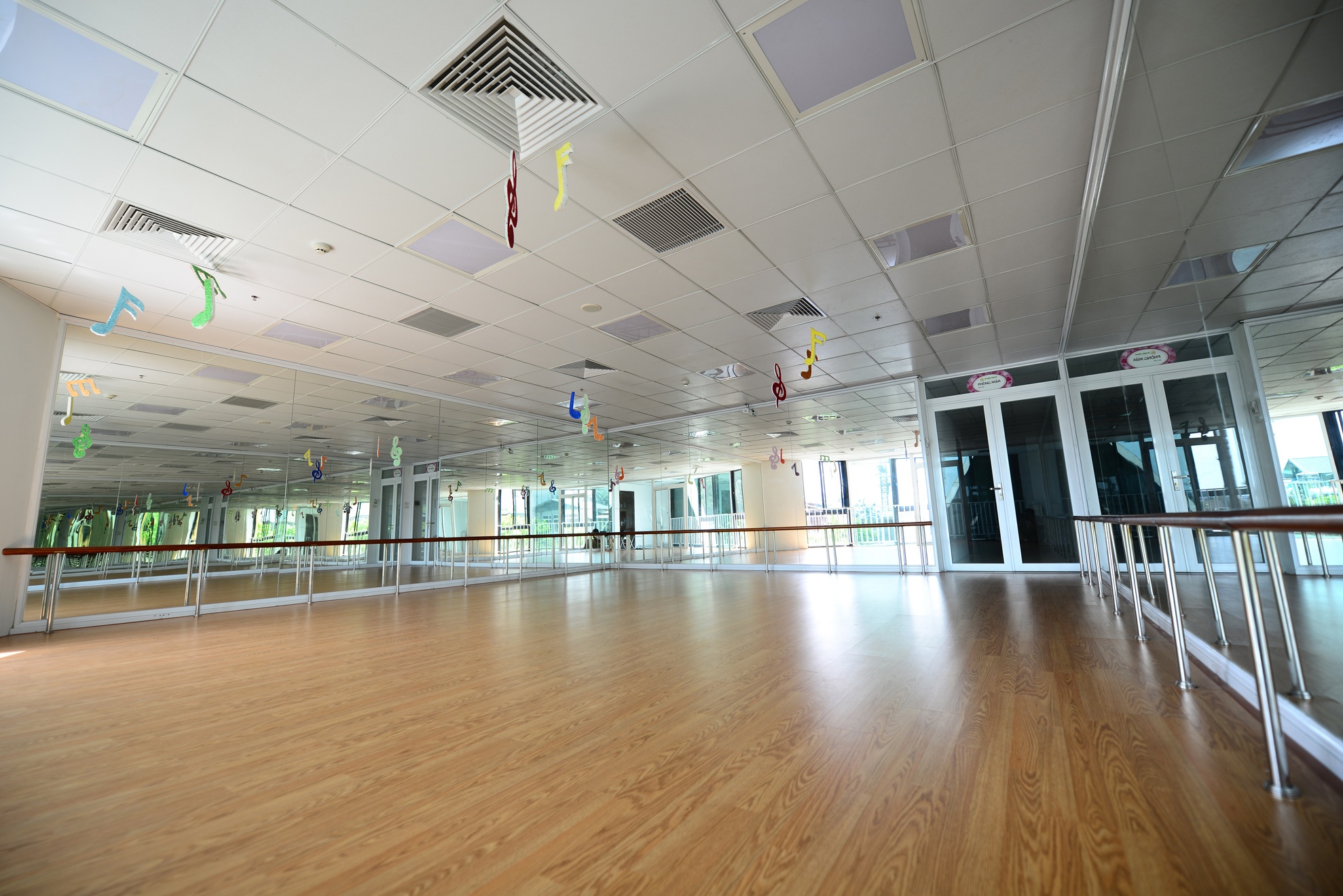 | Phòng múa có một mặt hướng ra ban công để lấy ánh sáng tự nhiên. |