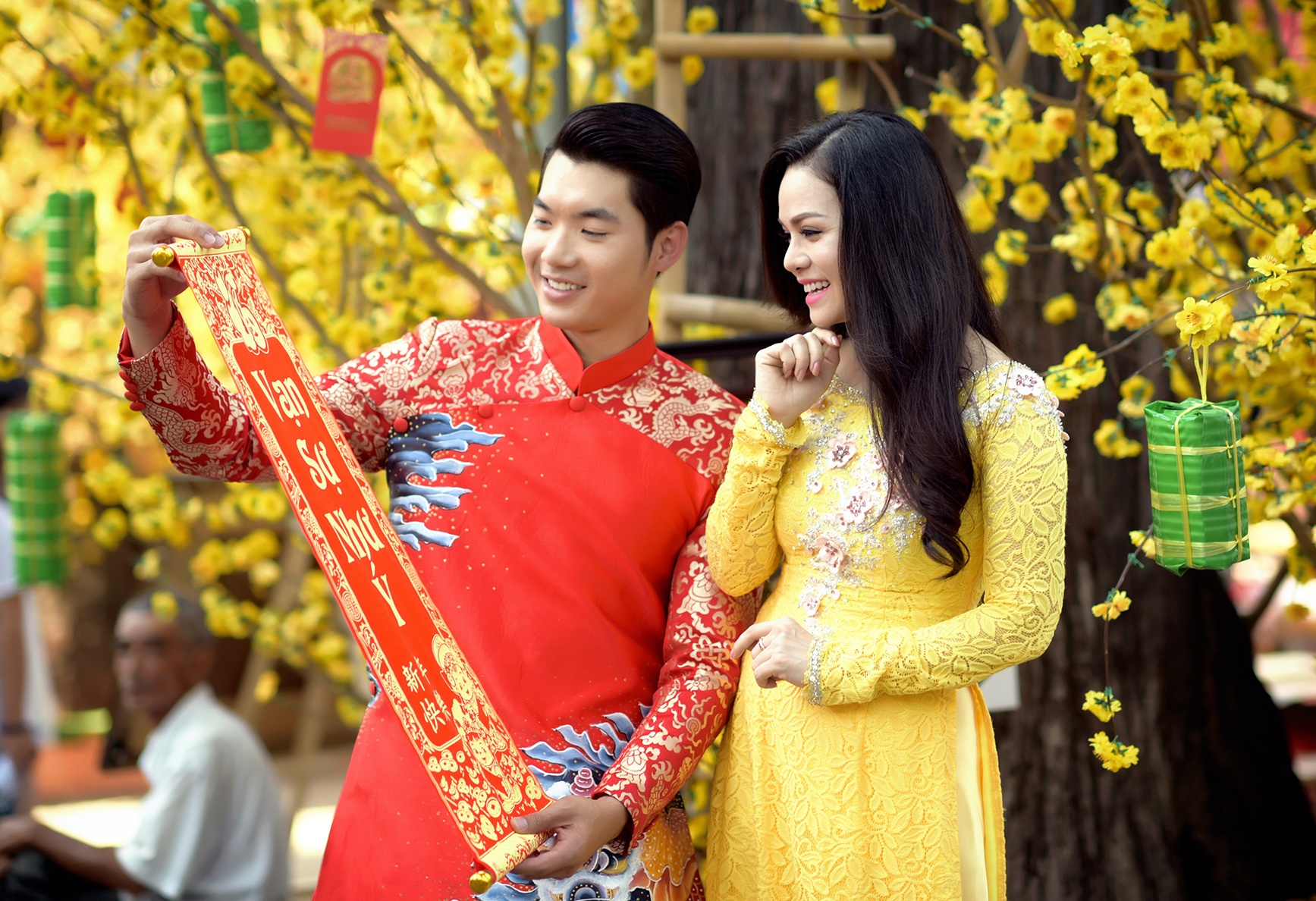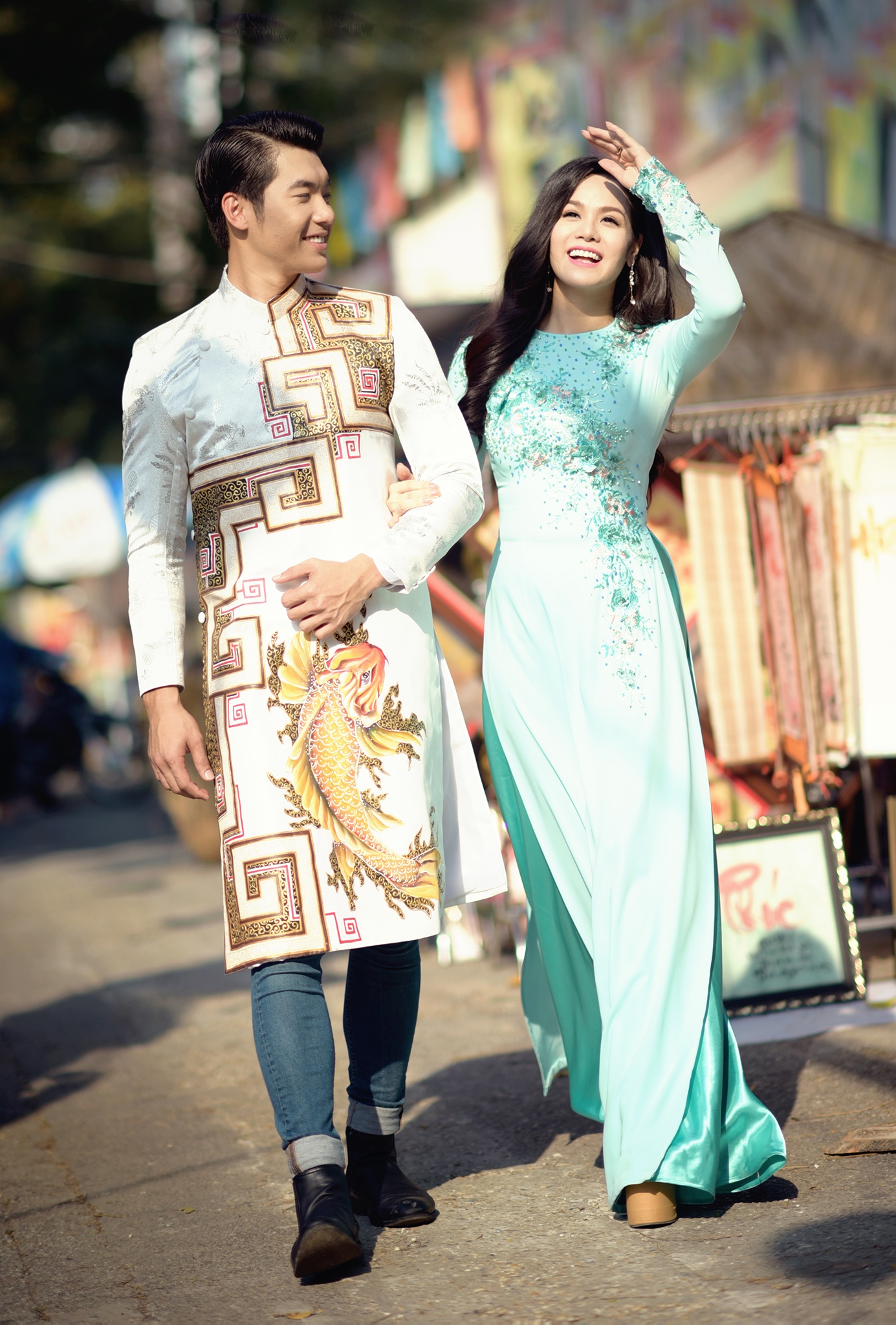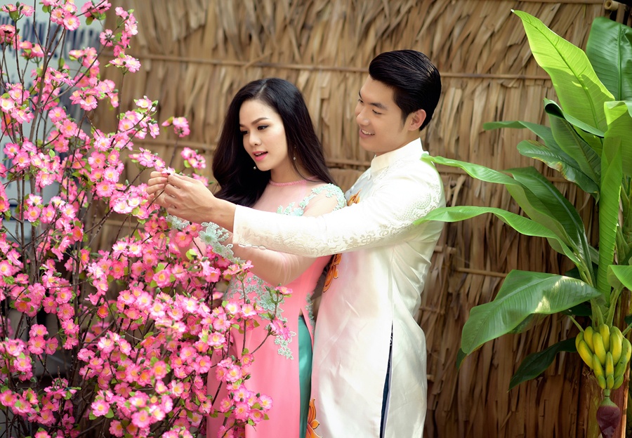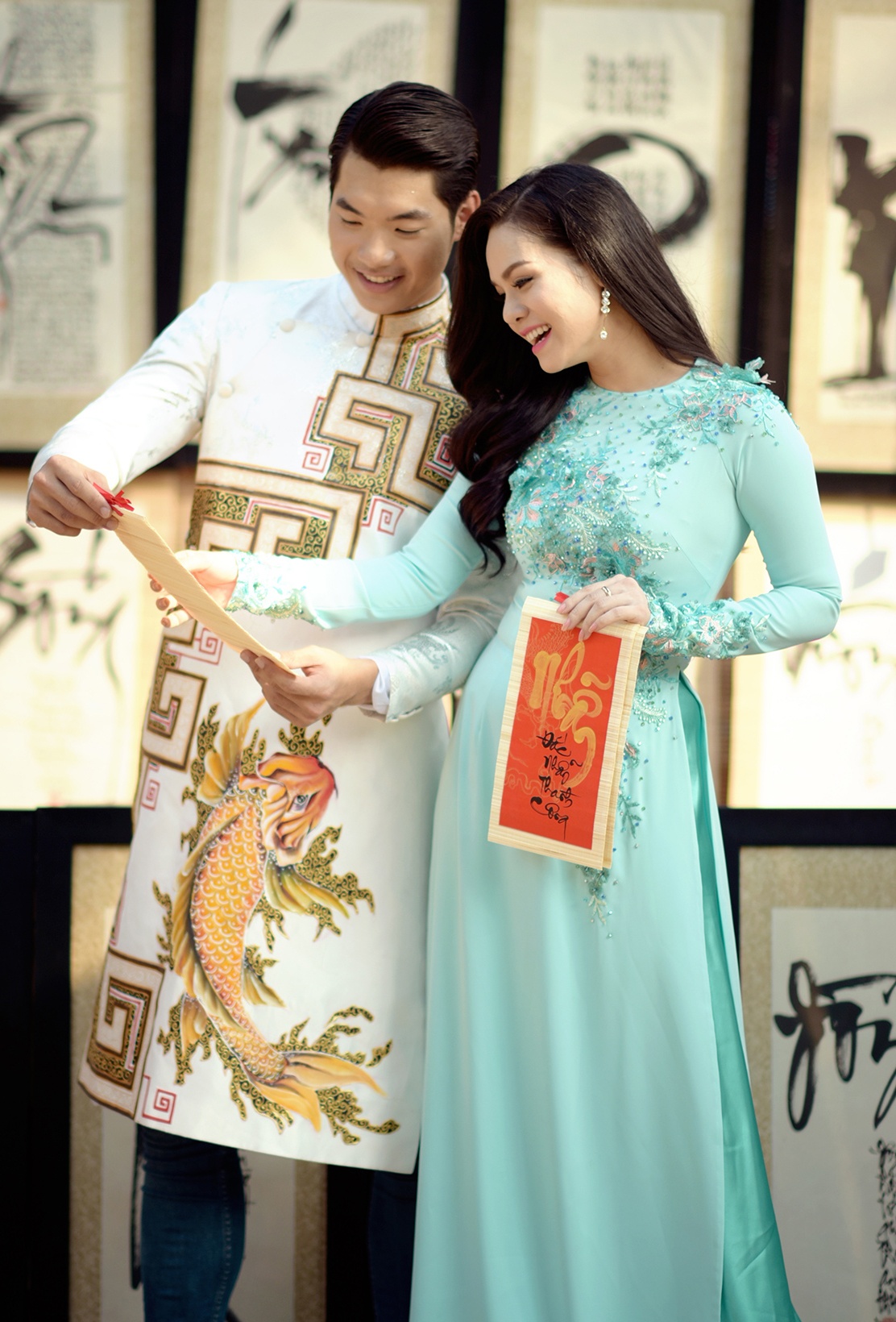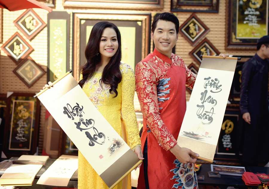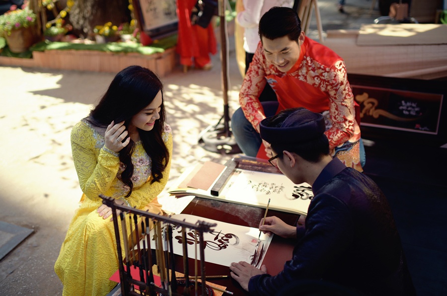 Trong bầu không khí rộn ràng đón năm mới, Trương Nam Thành rủ Nhật Kim Anh xuống phố xin chữ ông đồ. Cặp diễn viên hẹn nhau vào một ngày cận Tết, cùng diện áo dài thả bộ trên con phố trung tâm quận 1, TP HCM.
